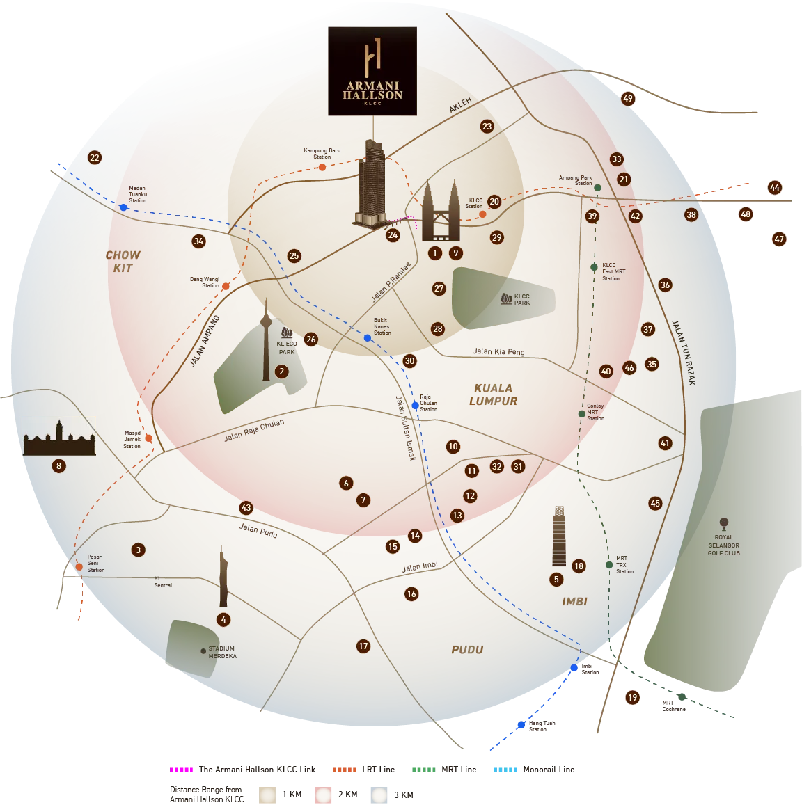 Situated in the heart of KL’s central business district and close to Tun Razak Exchange, ARMANI HALLSON KLCC is surrounded by key business centres and corporate offices, making it convenient for professionals to commute and network.